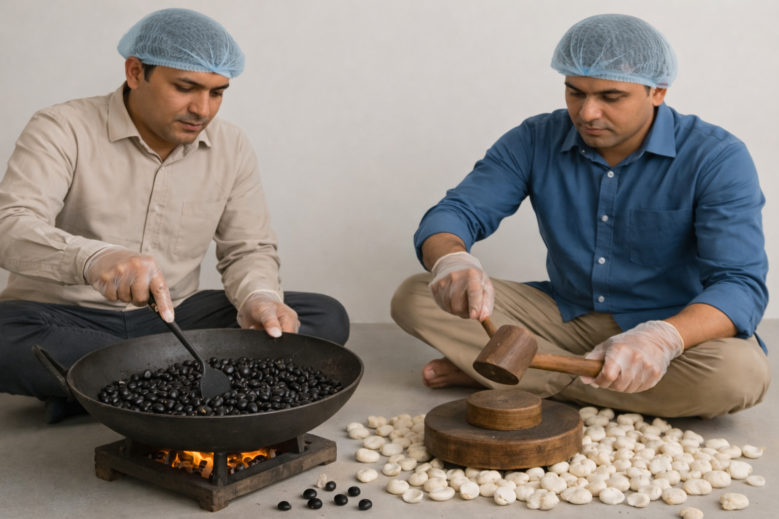 In the hands of skilled artisans, dried seeds are gently roasted until they bloom into crunchy makhana